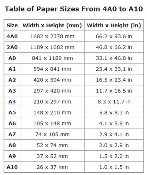 Để trả lời câu hỏi này, chúng ta sẽ phải quay trở lại nơi tất cả bắt đầu: tờ giấy đầu tiên chính thức được chuẩn hóa bằng cách đặt chữ A như một tiền tố với tên của nó là A0. Một tờ A0 chính xác dài 46,8 inch và rộng 33,1 inch (tương đương 1189*841 mm) và có diện tích 1 mét vuông. Bây giờ, nếu bạn chia 1189 cho 841 (kích thước của một tờ A0) bạn sẽ nhận được con số 1,414. Có gì đặc biệt về con số này? Vâng, đó là kết quả của phép toán khai căn số 2.