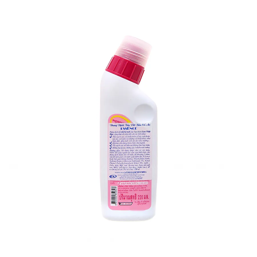Nước tẩy Essence giúp tẩy sạch những vết bẩn cứng đầu trên quần áo mà bột giặt không thể làm sạch được. Nước tẩy hiệu quả tức thì, không tốn nhiều thời gian. Nước tẩy cổ & tay áo Essence 220ml tẩy sạch vết bẩn khó như ở cổ tay, tay áo