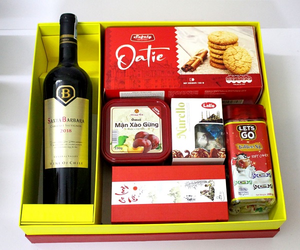 - Quà Tết 2022 sang trọng, lịch sự bao gồm: giỏ/hộp quà các loại rượu vang, rượu nhập khẩu; giỏ/hộp quà gồm bánh kẹo nhập khẩu và rượu vang; hộp quà các loại trái cây nhập khẩu, rượu vang; giỏ quà Socola, rượu vang; … Các sản phẩm liên quan đến rượu vang hoặc hàng nhập ngoại, sẽ giúp giỏ quà thêm phần sang trọng, lịch lãm.